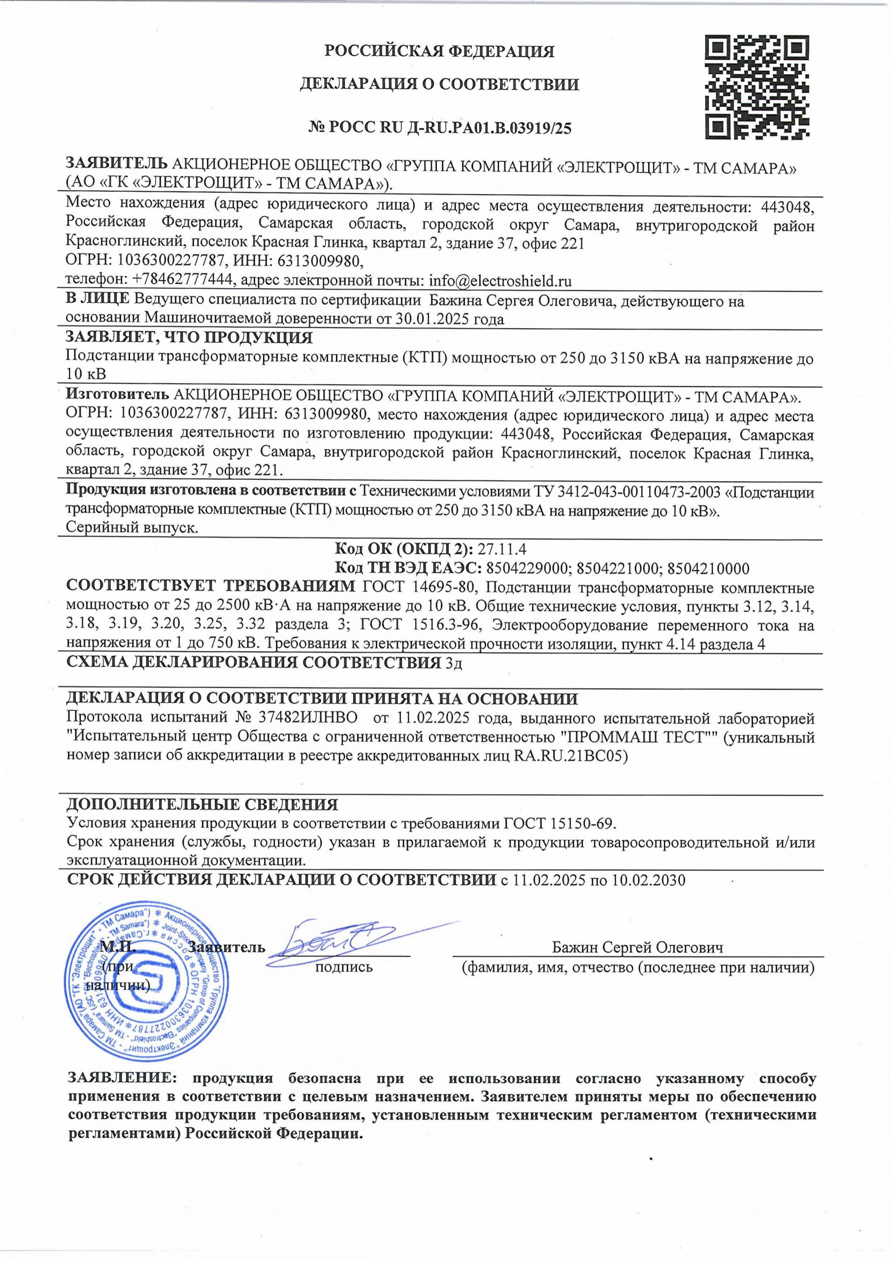 Соответствует ПУЭ, ГОСТ 14695