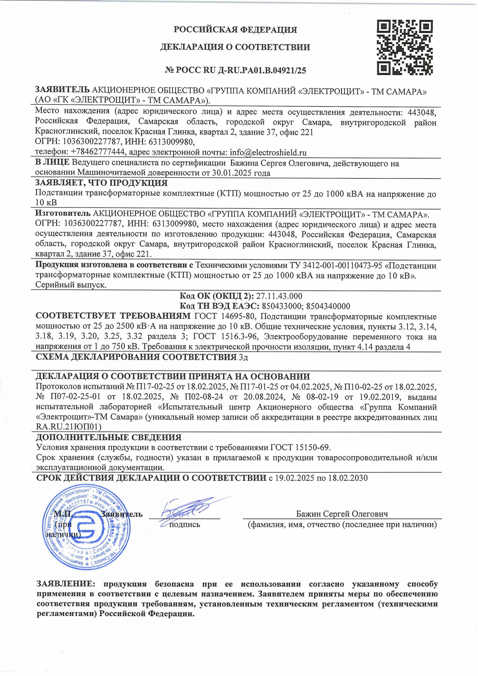 Высокая степень надежности достигается за счет применения в КТП оборудования собственного производства. Перед поставкой заказчику все оборудование проходит полный цикл приемо-сдаточных испытаний.